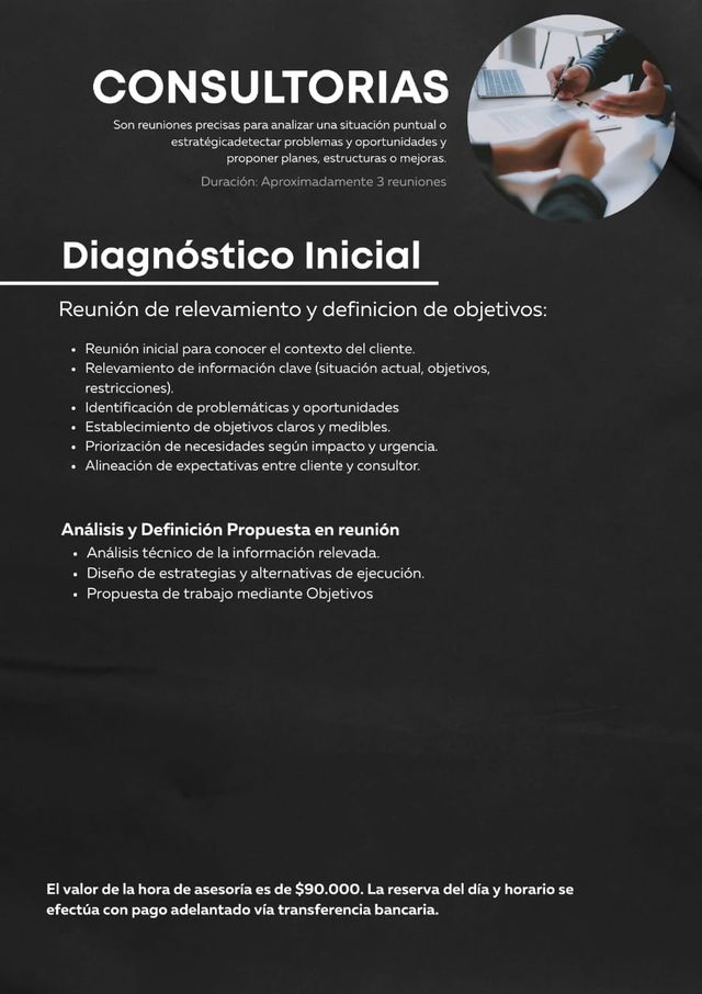 Asesorías personalizadas en finanzas y estrategia para emprendedores. Te ayudo a entender tus números, tomar decisiones y hacer crecer tu negocio con claridad. Reservá tu asesoría y empecemos a ordenar juntos.